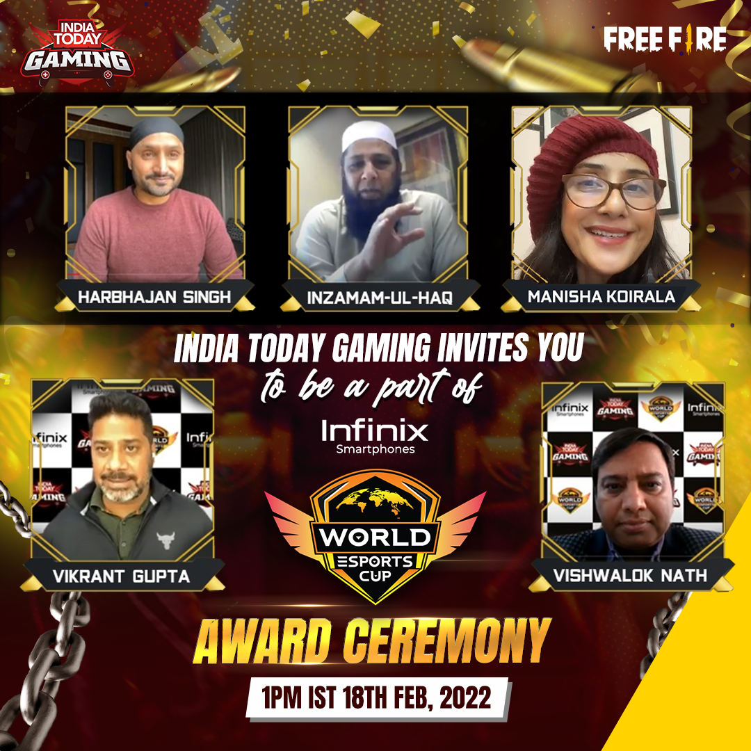 New Delhi, February 18, 2022: Two cricket legends from India and Pakistan, Harbhajan Singh and Inzamam-ul-Haq and Bollywood star Manisha Koirala graced the gala virtual awards ceremony of South East Asia’s premier tri-nation esports tournament, World Esports Cup (WEC). The WEC virtual award ceremony will be streamed live today at 1 PM on the YouTube channel of ITG.